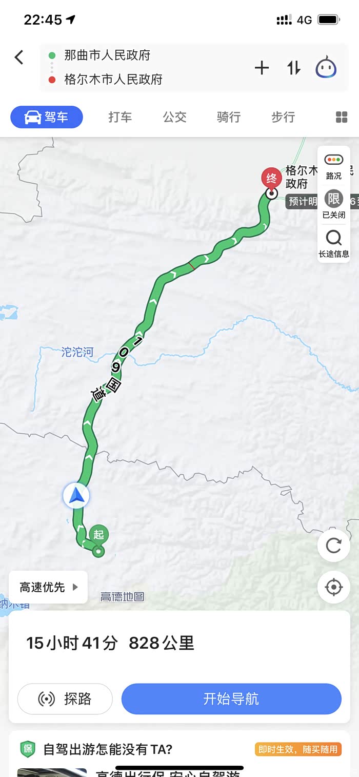 由于昨日从那曲多跑了100多km到安多,原本自信满满晚上八点前一定能到达格尔木然而,我还是太太太低估了青藏线的综合难度了。本以为,这800km国道就是因为限速加堵车导致跑不快,事实证明我太天真了,一路上没几个限速,也没堵车(谢谢老天保佑),主要原因是高原冻土沉降路面颠簸到你怀疑人生,感觉车都要颠散架子了(你说大梁结实?),车根本跑不起来的…前10个小时路面平均海拔4800米(这是在稻城亚丁的山顶上一直奔跑?),再加上一路沿途没有城市补给,身体再次承受多重考验。最后快进格市有个检查站,排队差点2小时(干得漂亮!)