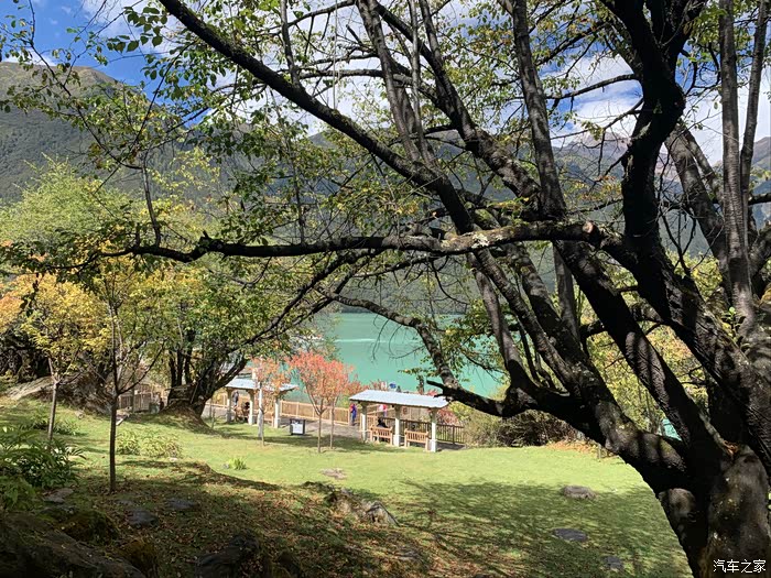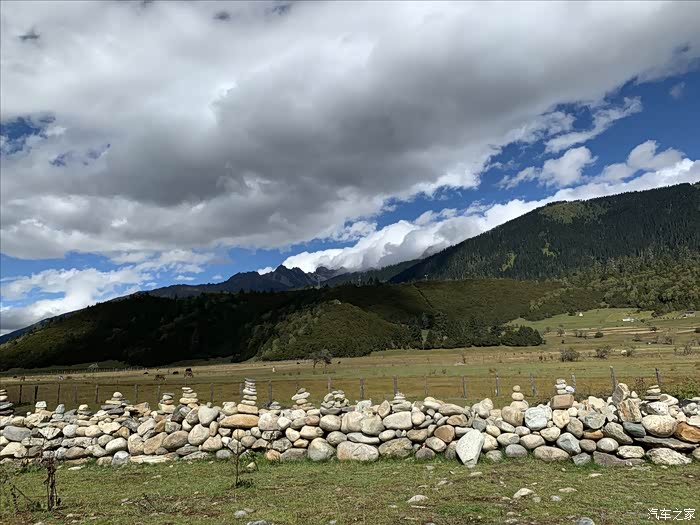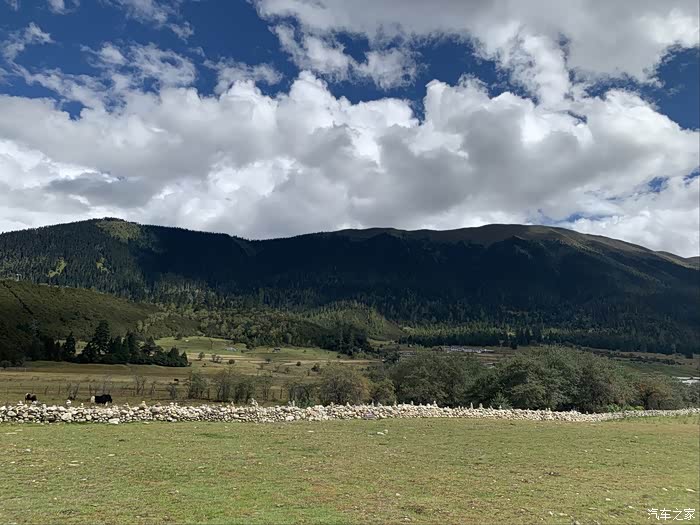 游客不多,心里暗爽,进了大门先坐大巴约35km盘山路……然后换乘电瓶车一路漂移10km左右(恩,高反刚适应,我又已经被晃吐了……)就这样坐了一个半小时到了卸货点洛绒牛场,已经11点了…不过景色也越来越美,感觉之前这一切都是值得的,不过,地狱的大门似乎刚刚才打开,而我们却浑然不觉……