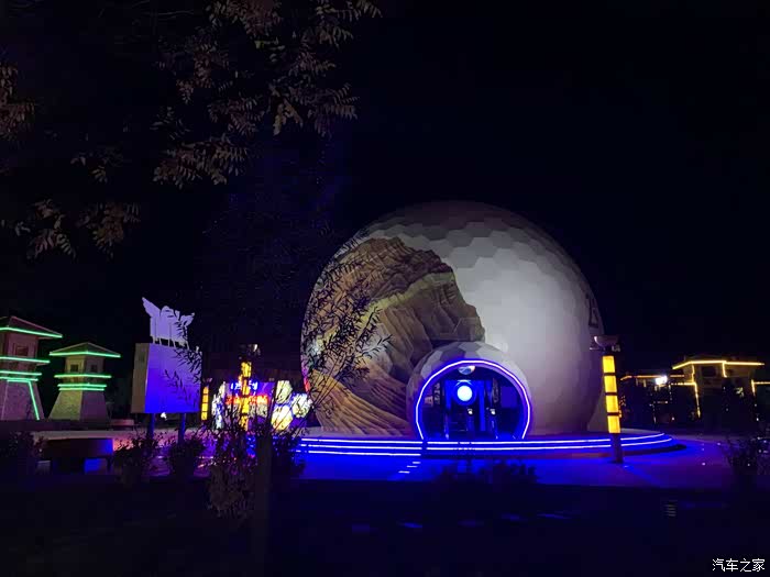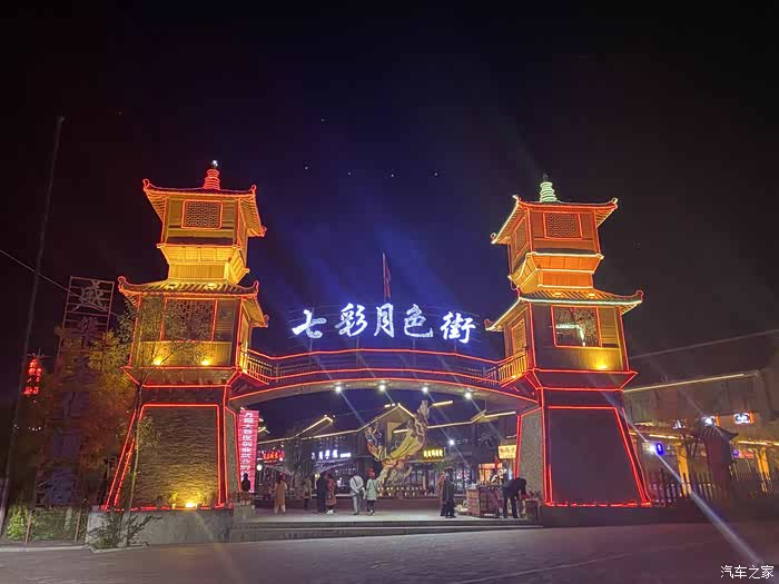 由于时间不太够,本想去看看金塔胡杨林(话说十月正当时啊!),只能看看路边小树代替了…到达张掖已经天黑了(这里比藏区要早黑一小时),为了给明早多留点时间,没去市里,直接去了七彩镇,很美的小镇,各种灯光都是七彩的。无聊打发时间看了场5D球幕电影<飞跃张掖>,主要是介绍张掖的一些景点等等,时间很短但是还是感觉挺有意思的。一路走来,体会到甘肃的好多地景点都很用心