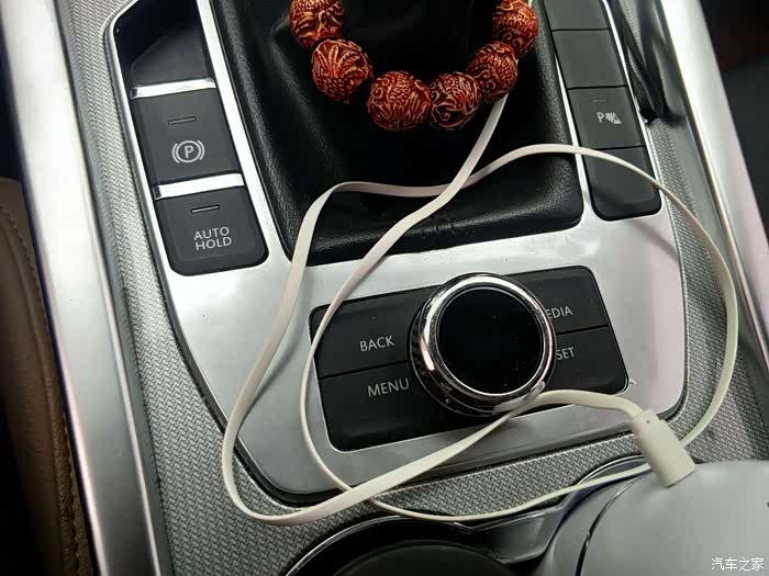 自动驻车、电子手刹、倒车雷达,还有一些多媒体控制按钮。后边还有两个杯座可以放手机钱包。