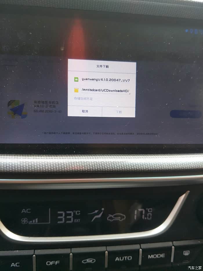 你车机总容量是4.99G,安卓系统会强制预留10%的空间,低于这个空间就会一直提示说存储空间不足。所以你就要时刻保持至少有500M的空间才行,解决办法就是删东西,你先看一下是不是自己安装了太多软件了,如果有自己安装的软件,找到它,把它的缓存清空。有些软件就会不停的缓存数据,也不自动清理。这样的软件你最好换掉,找同类的轻量级软件安装使用。另外,据我研究,这个车机的地图数据应该是安装到专门的分区内的,不会影响用户空间。你还是先从《自己安装》软件的缓存查一下,大胆的清空,不会有影响的。