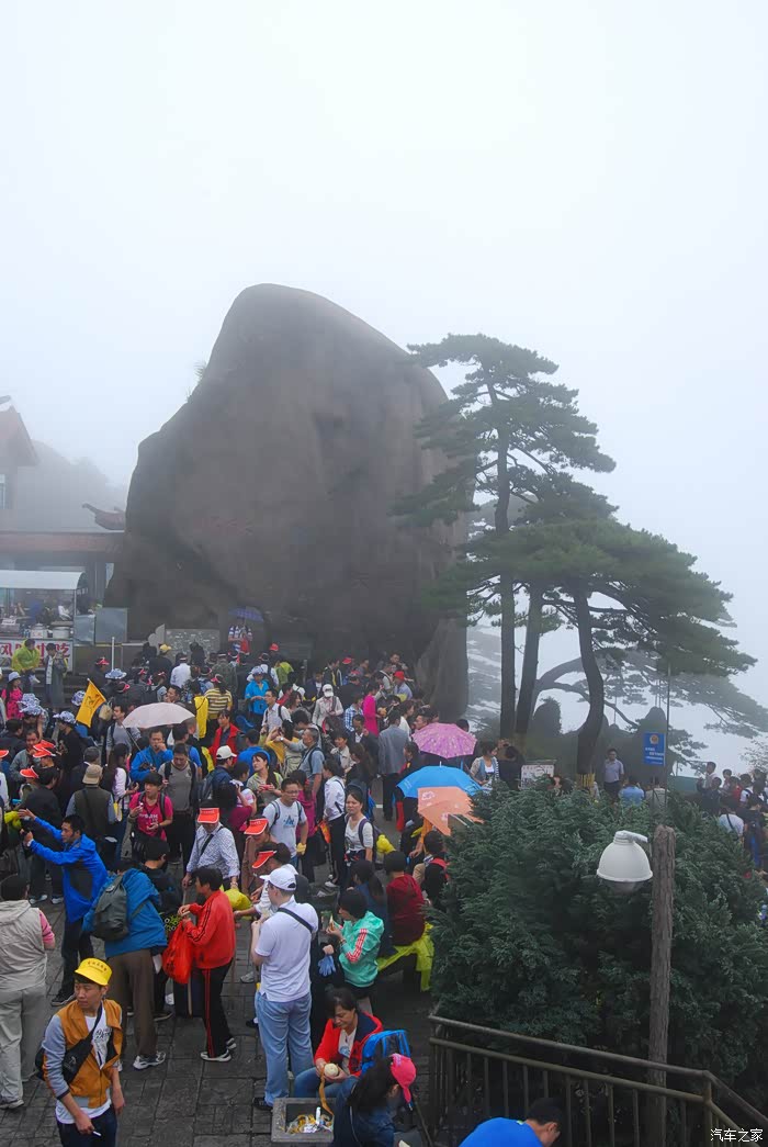 早上从酒店出发到黄山景区还翻了好几个山,好在山路比较好走。等我们登上缆车上到第一平台,看到的都是云雾缭绕,还有就是人山人海。跟着人潮,匆匆看了一眼迎客松,就往光明顶爬。爬到一半,就有好心的游客问我们预定好山上的酒店没,当我告之我们定的是山下酒店时,这位好人让我们赶紧回头,不然赶不到下山的缆车。黄山景色就这样了无生趣的一掠而过。