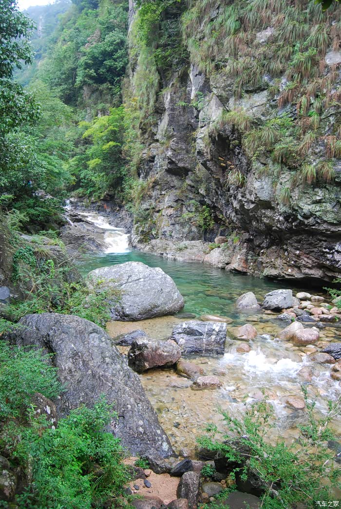 在黄山的失落,在翡翠谷得到了一点慰藉。整个景区溯溪而上,遇到小谭深渊,水质清澈,碧蓝的色泽层叠晕染,非常的养眼。