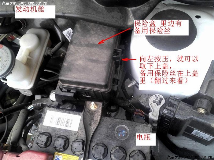 网购了一个MP3解码板,想把它加到车上放歌。使用车充从点烟器处取电供给MP3解码板5V电压。可能是车充质量不够好,造成收音机和点烟器处无电,猜想是保险丝烧断。于是来奥拓论坛发贴求助,搜索前辈高手贴子。通过认真学习和高手提示,终于有了一个大体了解,下午5点自己把15A保险丝更换成功。话不多话,见图。首先打开发动机舱,拿下保险盒上盖,取备用保险丝。然后到车内,拆掉方向盘下面的护板,露出线路及车内保险盒。注意拆卸方法,是用手向上托。拆掉护板后,里边线路比较多,从右向左看,可以看到一个保险盒。这个忘了拍照。这是拆下的盒盖保险盒内的许多保险丝,颜色不同,电流安数不同。要换的就是最上排左数第4个。用夹子把...