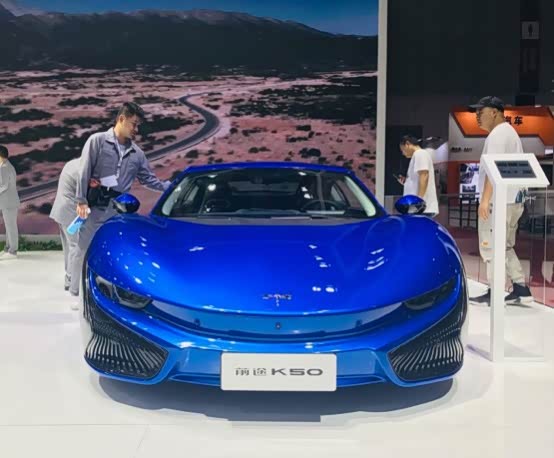 展馆5台不同颜色的前途K50一字排开,近距离观察前途K50,外观颜值确实足够吸引人,新出的三款颜色也是吸睛十足。