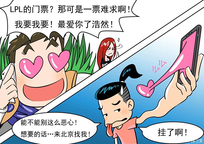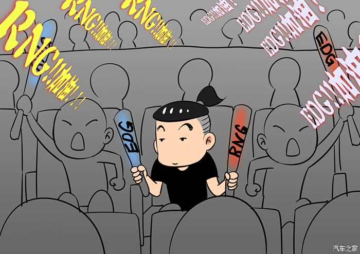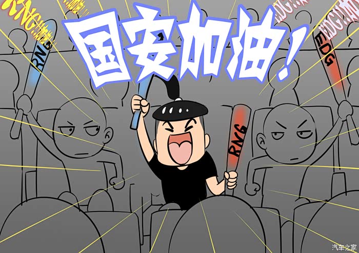 这段漫画是浩然吐槽时候的创意……因为他平时不怎么玩LOL,对双方队伍也不是很了解…但现场的气氛真的很燃!浩然说他也被感染到了~情不自禁喊了国安加油!哈哈