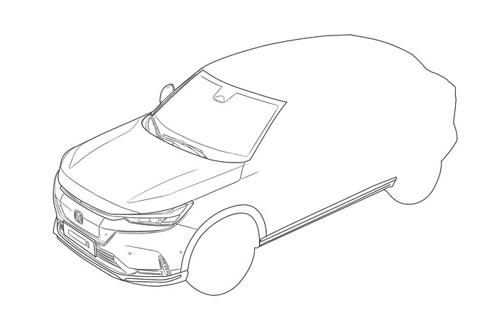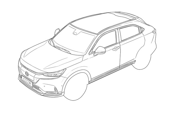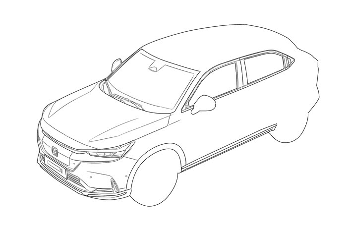所以说绘画是个神奇的技能,一支简单的画笔就能惟妙惟肖的勾勒出车的大致轮廓,前脸狭长的车灯和标志性的Honda标识已经可以清晰的展现出来了。
