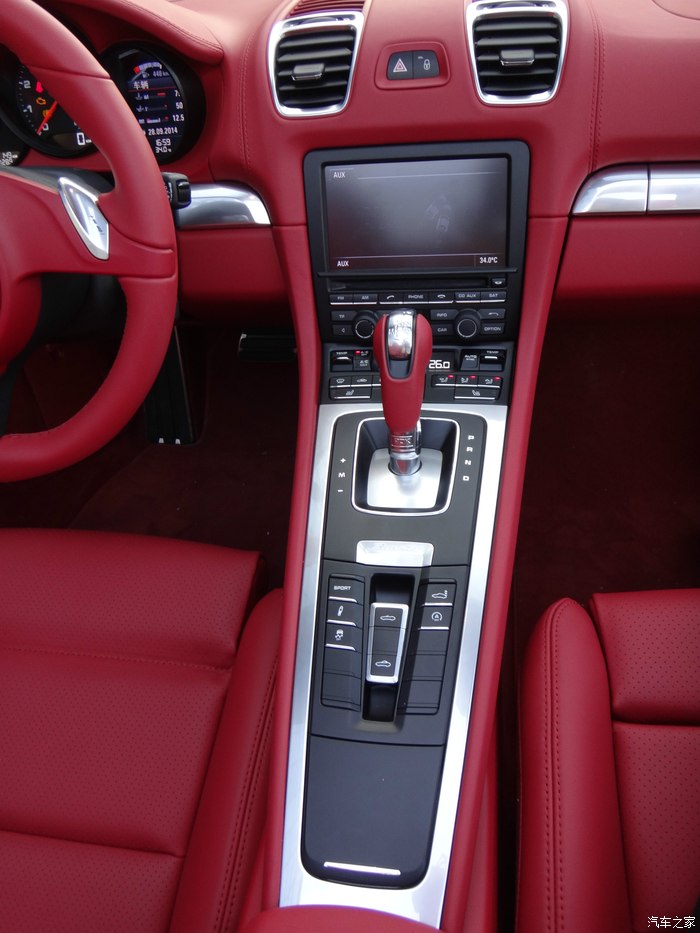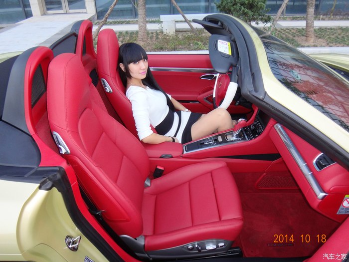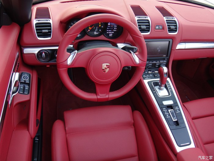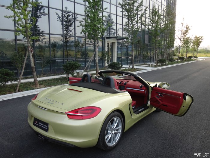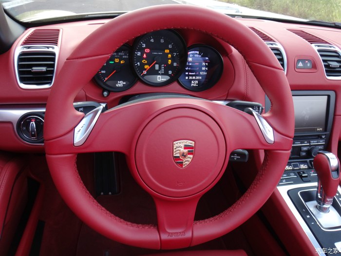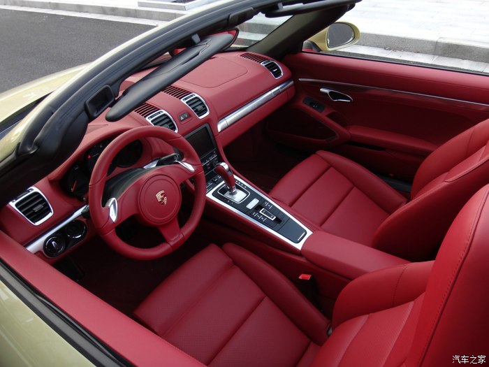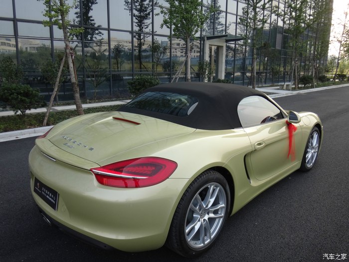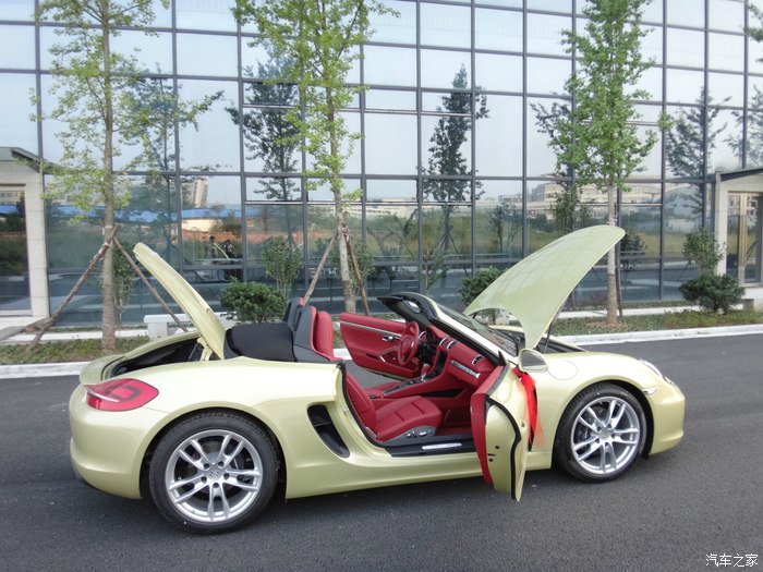 下面说说我的选车经历,目标曾经锁定过敞棚跑车的奔驰SLK、宝马Z4、奥迪TT和雪弗兰大黄峰,大黄峰是我相当喜欢的一辆跑车,一直我想换大黄峰.但老婆说你买大黄峰以后,还是会梦想着开一辆敞篷的保时捷,最终决定了选择保时捷Boxster。到4S店试驾以后,我才明白Boxster就是我想要的。销售好暴力,直接带我跑上180,那种推背感让人有过山车的感觉,普通模式开起来还算舒适,运动模式底盘较硬路面稍有一点不平,你感觉到颠了,再就是过弯性能完美,方向盘操纵自如。左边插钥匙点火,让我开始很不适应,油门踏板踩到80%左右会有一个卡扣,在用力踩到底会有很强的爆发力。选择动力转向很实用,方向盘转起来还有一点生硬的感觉。 Boxster的储物空间比想象的要大,前后储物箱都很实用,两个人要出门旅游应该够用,当然,放不下大的箱子。