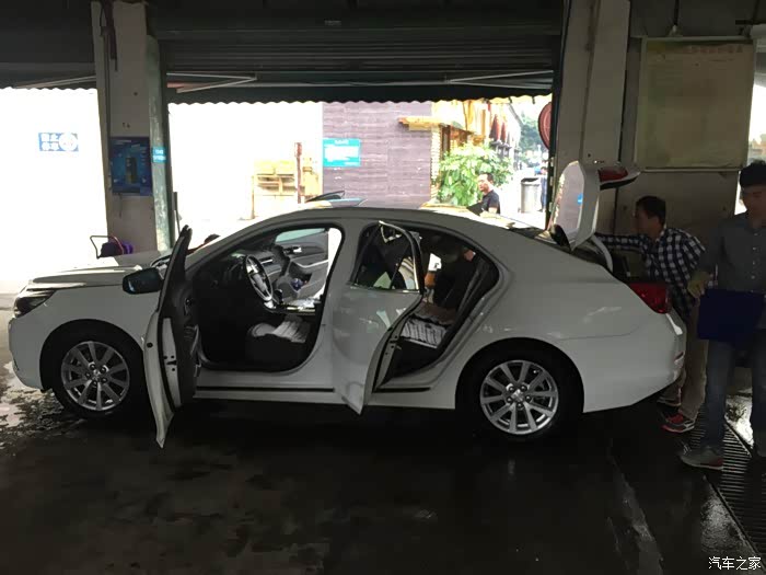 刚洗车,自己洗。洗到一半下雨了。老天帮洗车,没得说。让他洗吧