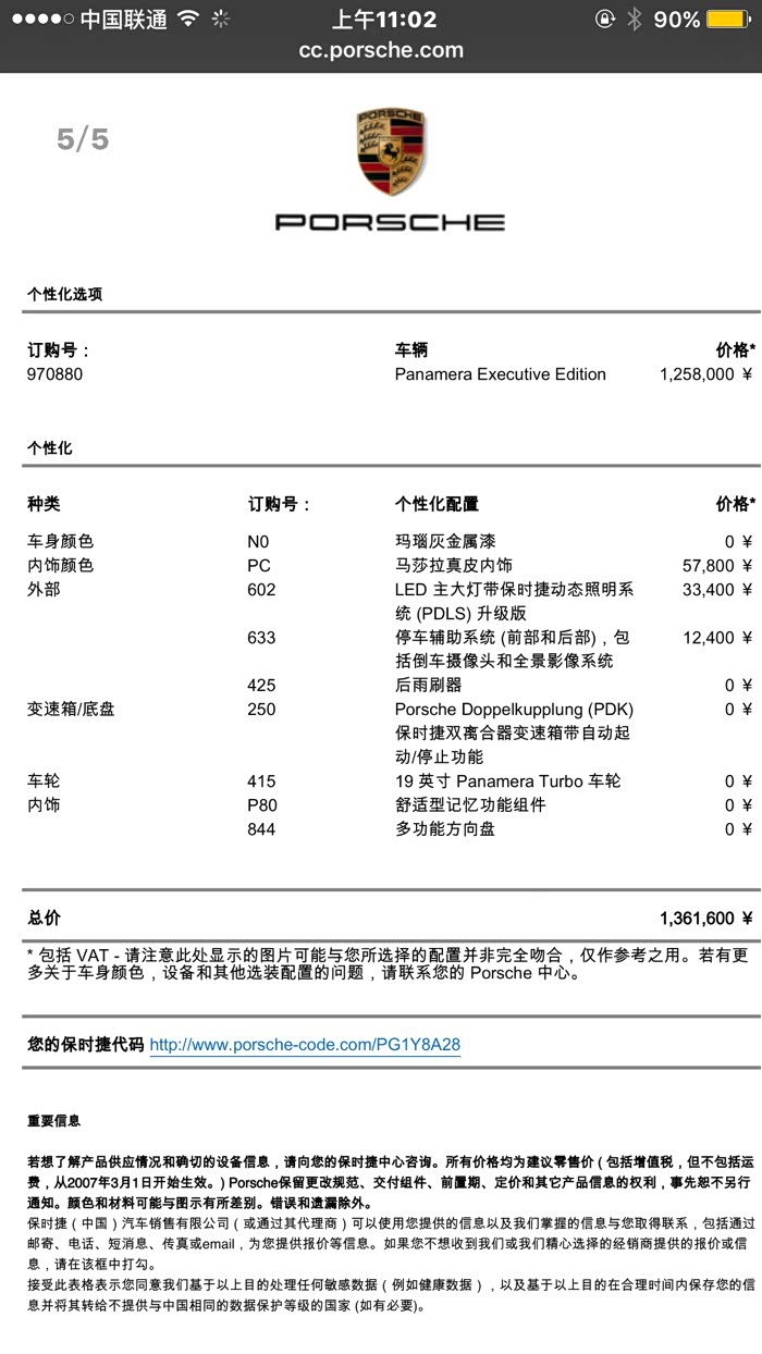 父亲幸苦奋斗了十年,他的座驾帕萨特也伴随他十年了,将近35万公里了,于是父亲决定换车.当时一想到换车我的脑海里就是想着panamera,便马上给父亲看这车,父亲一看就顿时喜欢上了它,尤其是内饰的精美做工和按键,加上小P行政版的后座空间,以及后座的舒适度,便毫不犹豫决定就买它了。