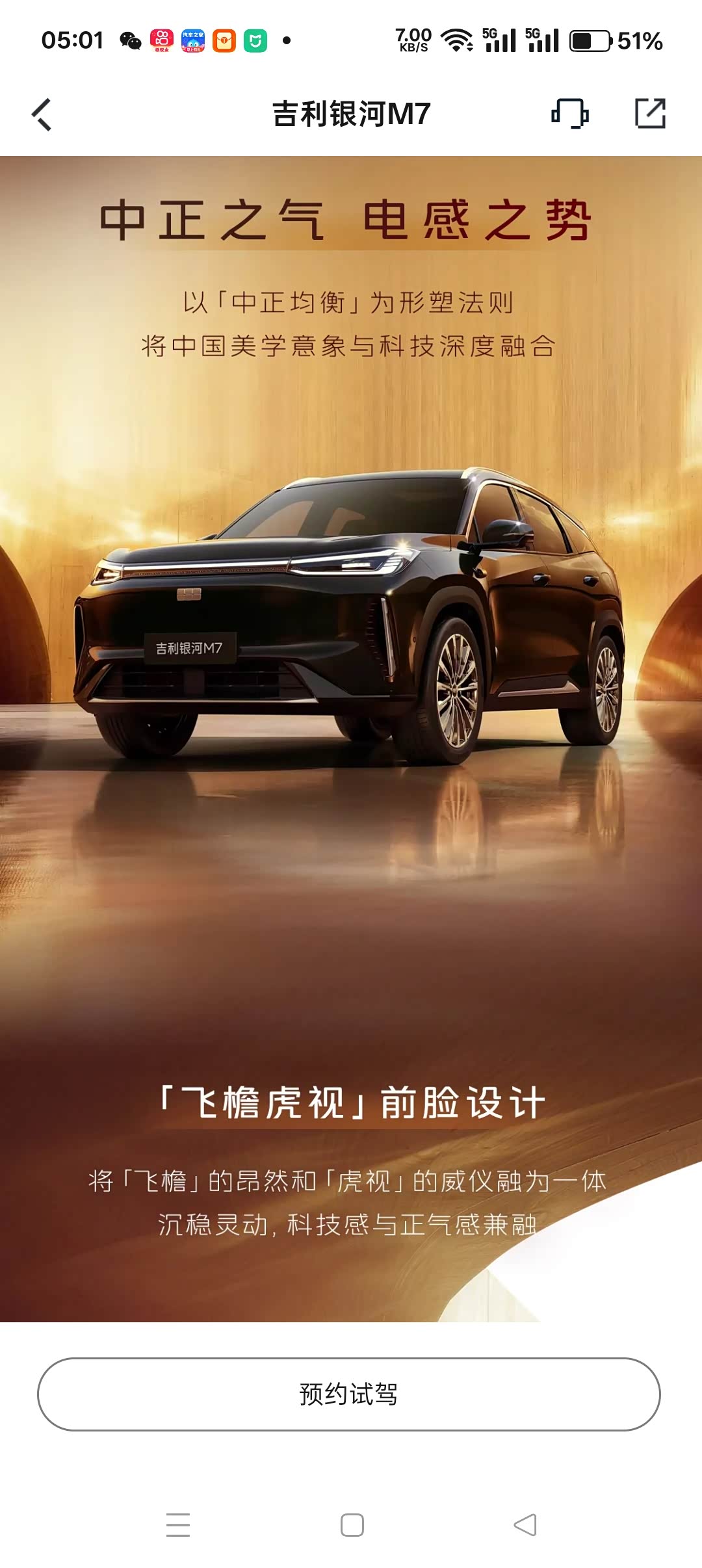 估计大家都看出来了,这次的银河M7的外观设计确实比之前的设计好多了,前脸看上去属于那种稳重的感觉,一点也不花哨。从侧身也有着一个明显的运动感,尾部是一个贯穿式的设计,也是随主流化的一种风格。这次的外观没毛病,所以我觉得一辆车如果想卖的好,外观一定要到位。再说它的内饰也有了很大的提升,横屏的设计,简约的设计风格,就是这个内饰怎么看都比较顺眼,这个内饰看上去更像银河M9的内饰,挺好看的,现在就是关注这车的价格