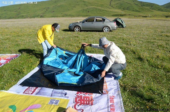 太阳快落山了赶快把帐篷搭起