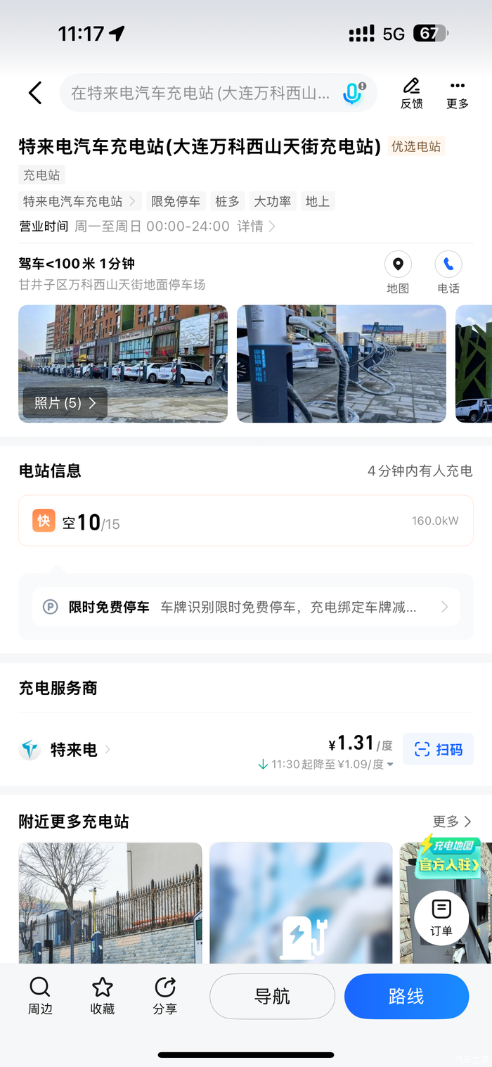 实测推荐:城市核心商圈的合作站设备较新(如本地大连多家特来电站),充电功率稳定在100kW以上。