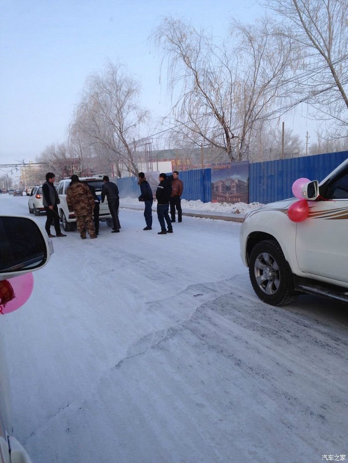 路上都结冰了,好几次打滑,又必须赶在12点之前把新娘接回来,车友们二话没说都下来推车,比自家兄弟还靠谱。