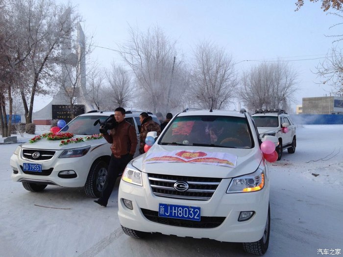 入手GX5之后加了新疆车友会的群,平时没事跟大家讨论下用车感受,慢慢也就熟了。去年12月份小夏突然在群里说他1月底要结婚了,叫我们有时间去喝杯喜酒,捧捧人气。结婚毕竟是喜事,也不好拂了人家面子,又不好意思空手去,跟群里的车友商量着送个大礼给小夏,最后7个人决定开上自己的车给小夏组成迎亲车队,去帮兄弟把老婆抢回来。