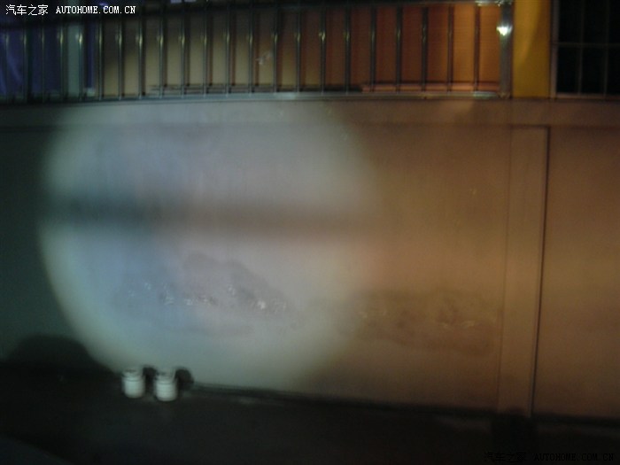 倒车到围墙附近看光斑,LED亮些,也很圆啊