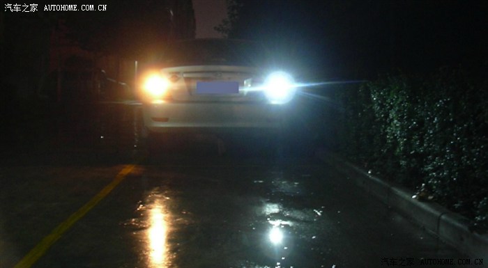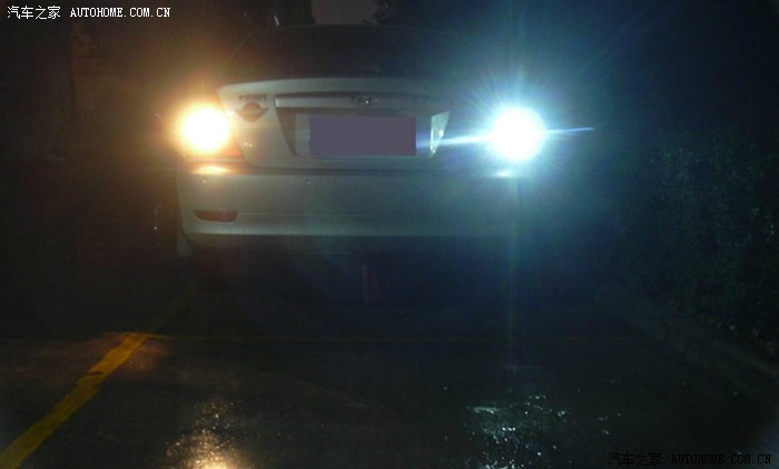 图中左面的灯为原车灯泡,右边的灯为新换的LED。从图片上看,流氓倒车灯的亮度确实高。
