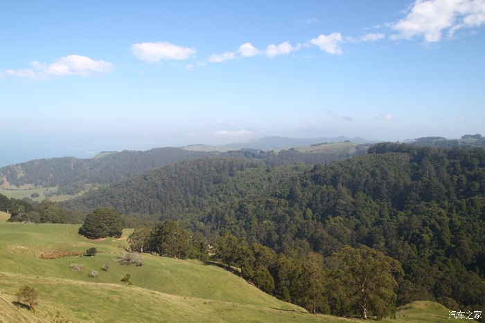 羡慕了一番后,我们准备走了。下一站ApolloBay,大洋路上较大的小镇,很多人走大洋路是将第一站过夜定在ApolloBay的。那就上路吧,一路看着风景的我们开了没多久就遇到事情了,一路开来显示去ApolloBay的一段大洋路封闭,估计是维修保养,不会这么巧吧?再往前开,这时候心里其实很紧张,因为咱们这漂洋过海的来到澳洲来到大洋路,为了走着世界上最美的海洋公路,现在真到了,居然跟我说封路?!既有点紧张又有点气愤,可是已成事实,一路开来,确实有几辆车之前也是往我们这个方向的都纷纷回来了。跟LP商量了一下,还是继续前进吧,万一到了说不定就解除封路了。就这样开到了封路的地方,走过去一问,确实在保养,问了下时间什么时候开通,下午3点,此时是上午11点不到,还给我了我们一张修路的示意图,因为修路的部门知道走这边的人一般都去ApolloBay,因此示意图直接画了一条走内陆的路线,问了下如果走内陆需要多少时间,回答是大约2小时到ApolloBay,如果不封路需要30分钟到ApolloBay。想了一想,如果等的话到达ApolloBay是下午3点半,如果现在就绕内陆走的话下午1点到,为了节省宝贵的时候果断绕内陆走。一路上碰到开越野车的当地人,得知也要去ApolloBay,还给我们看地图指了一条路给我们,基本与修路人员给的路线差不多,但是他们就绕更短的话了,我赶紧问我们可以走这条路吗,回答我们的车不行,因为不是铺装路。所以计划赶不上变化,只能老老实实的绕路了,不过事实证明,这样往内陆绕一下,却也体验了不一样的感觉,一望无际的草原和山谷。