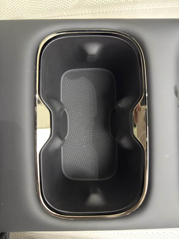 新增了两个手机收纳面板,其中靠近主驾的一个支持最高50W的无线快充,主副驾的手机都有了专属的收纳区域,再也不用低头找手机了。