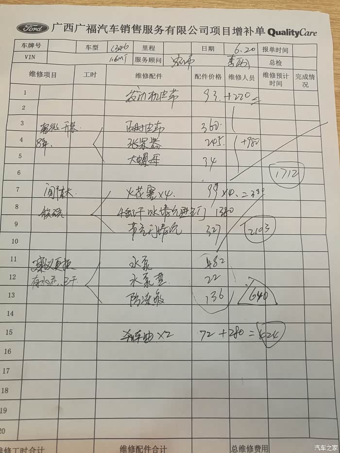 十一年了正时皮带和水泵都没换过,昨天去福特专修那里换正时套装水泵防冻液刹车油一共1730元,水泵和正时套装都是原厂件,但是皮带是1.5T的皮带,装完启动了几次没有问题,但是过了半小时准备回家,就启动不了,打火想哒哒哒哒,试了几次老板检查说是启动马达有问题,就换了成都华川的启动马达450元,换完就可以正常启动了。回家加油完在加油站自动机洗车,TMD仪表显示引擎故障,又返回修车店检查,出现这么多故障码?是不是换的1.5T的皮带不对造成的问题啊!原来启动马达也没有问题,换完一堆问题,回家路上开车感觉车子很颠,进小区减速带后减震感觉有问题了,框框响,车子不修不坏,一修TMD什么问题都出来。明天有空再过去检查后减震了,也没发现四个减震漏油。