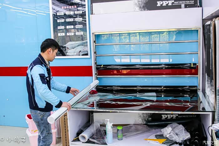 站外面抽了根烟的功夫,进来看见已经是这般模样,这是要减肥瘦身还是要进微波炉加热啊(果然家家的选择没错这阵仗很好很专业)其实这是车身保护膜,主要作用是防水,保护车漆不受伤害。