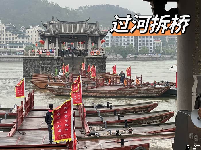 接下来简单的说说本次潮汕之行吧,潮州市的主要景点在潮州古城。最著名的景点是广济桥。它位于潮州古城东门外,始建于南宋横跨韩江,联结东西两岸。这座桥集梁桥、浮桥、拱桥于一体,誉为“世界上最早的启闭式桥梁”。由十八只木船连接而成浮桥,两边则是石梁桥,浮桥在白天可以供人通行,在晚上会拆掉,使河道供船只通行。很多游客趣称这个为“过河拆桥”。夜晚这里还有灯光秀展示,非常的精彩。