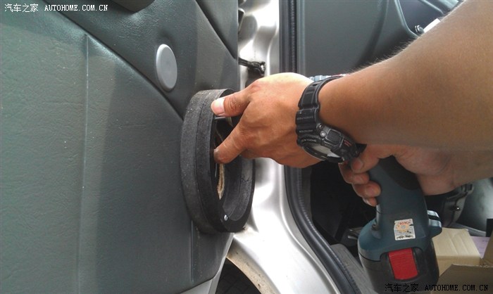 开始安装喇叭垫,喇叭垫用了两个,一个18MM的 一个15MM的,正好。 赞一下这师傅,手艺很好,你提出的要求他会尽量做好,我之前的CD机,后门的同轴喇叭都出自于这位师傅 赞 赞 赞