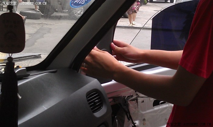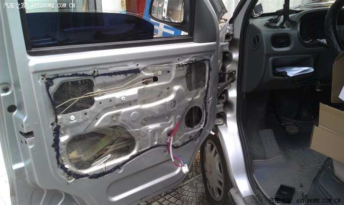 门板拆下来,五菱之光前门喇叭是4.5寸的,以后想改同尺寸喇叭的车友注意了。