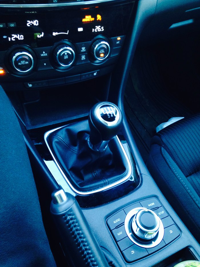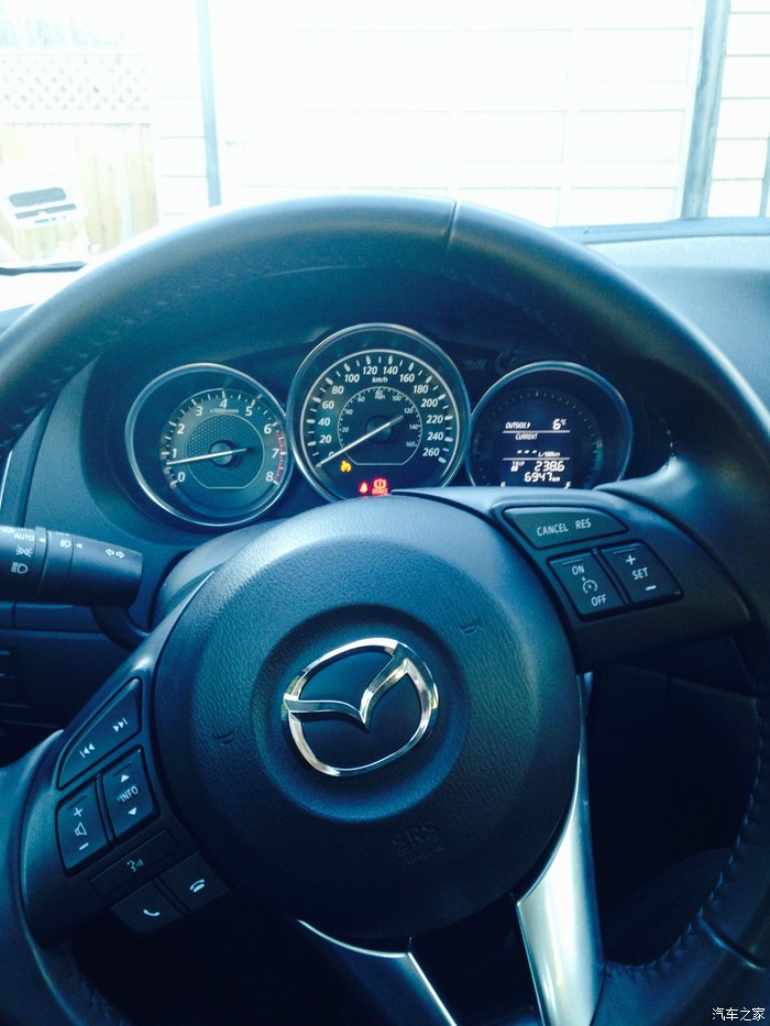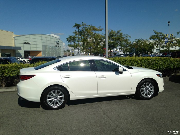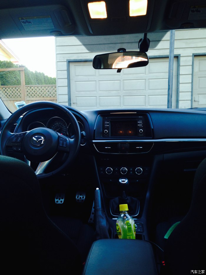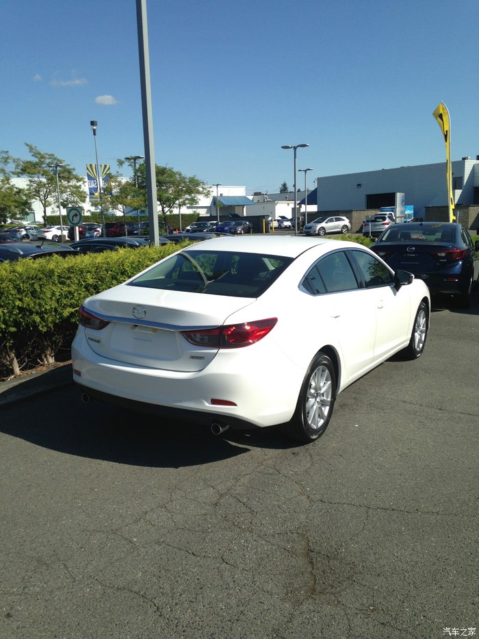 车是2015 Mazda 6 GS,加拿大马自达分为最低GX,GS,GT三个型号。车今年8月19号提的,是中间配置,我要求是要手动档,因为继我第一辆车以后我就爱上了手动换挡的直接和完全操控感,当然2015款只有中配的有手动,虽然顶配GT在马自达官网上也有显示有手动变速箱选项,但是真正有的现车却没有,这辆白色的GS是当时唯一一辆,是手动档可以买到的最高配置了。没有装备豪华包,所以没有天窗和皮椅,不过没关系,我们在谈论什么?这是一辆马自达啊,从来不是以豪华,舒适,妥协来吸引马自达的追随者。