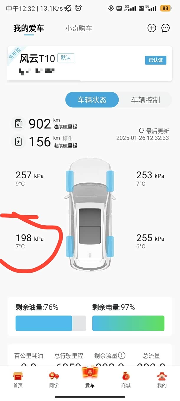 接上一篇,我的爱车奇瑞风云T10有胎压显示功能,比我之前只有胎压监测的落后油车方便多了,由于比较关注胎压,我总会通过方向盘上的按键或者手机上的奇瑞汽车app查看最新的轮胎温度和胎压,以保证良好的胎压和行驶质感。
