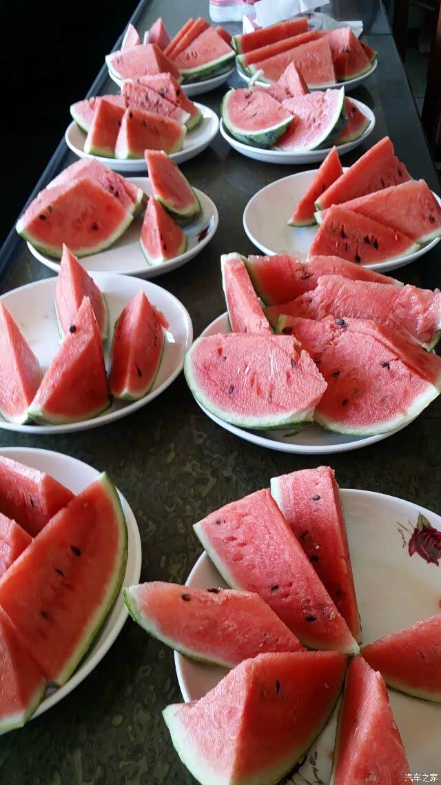 还可以品尝基地自产的新鲜水果,哈密瓜、西瓜都很甜。接着我们还去参观了车间。