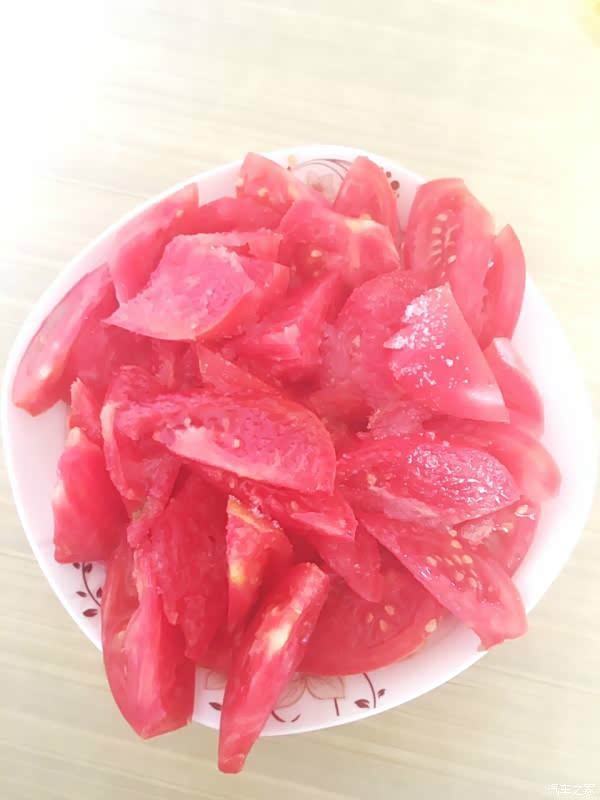 看这颜色就知道西红柿是自然生长的,菜市场有些很红的西红柿,总担心是打了催熟剂,外熟里不熟。
