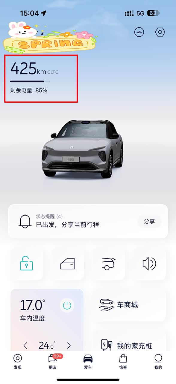 大家都知道在冬天的时候电耗一定会比较高,而且续航也比较差。那现在春天了,今天特意留心了一下蔚来在这样的天气下一天的续航和消耗里程是多少。