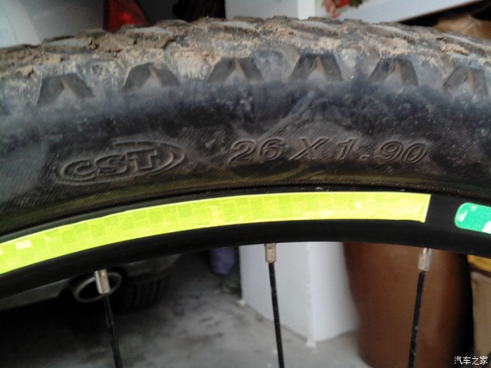 轮胎,雨天柏油路上不太好用。。反光带是某宝购物送的。