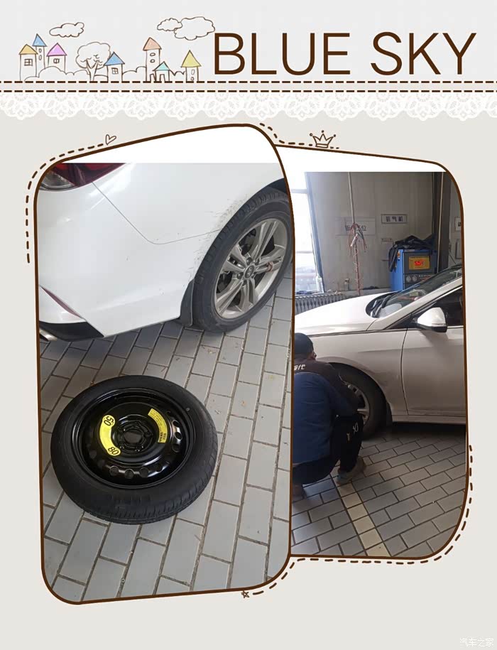 到店之后售后小哥哥把车开到维修工位,首先给每个轮胎补气,包括备胎也是一样的,全部有工作人员帮助完成了,感受到了不一样的服务,👍经过半个多小时的时间全部完成