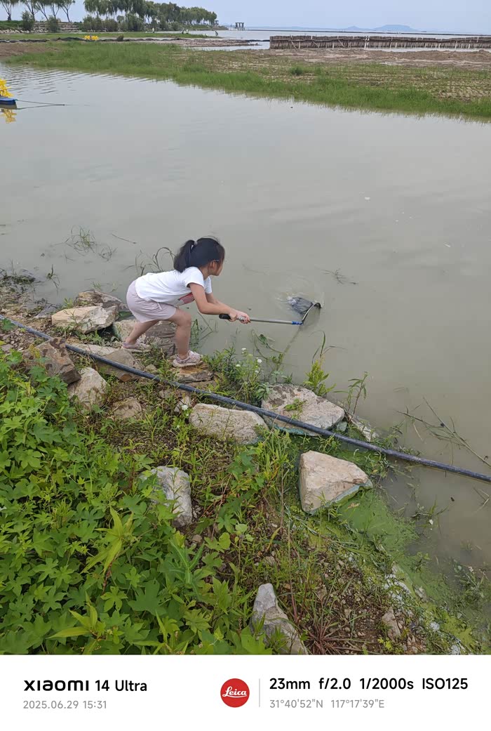 小孩子就爱玩水。特意买了一个可伸缩的捕鱼网兜,这下好了,任何水域,她都要下去捞几下。这种有枣没枣打三杆子的探险精神倒是符合新时代的少年气质。