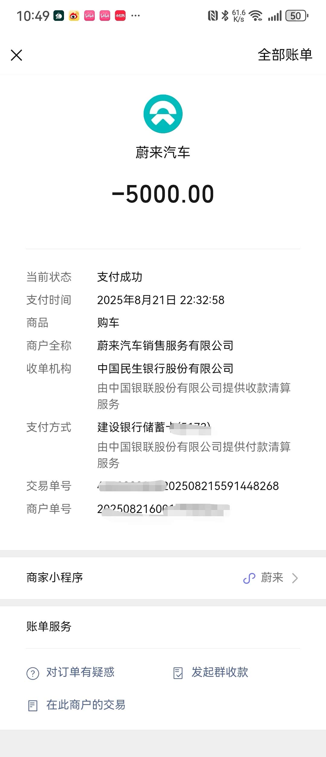 5000损失蔚来给补