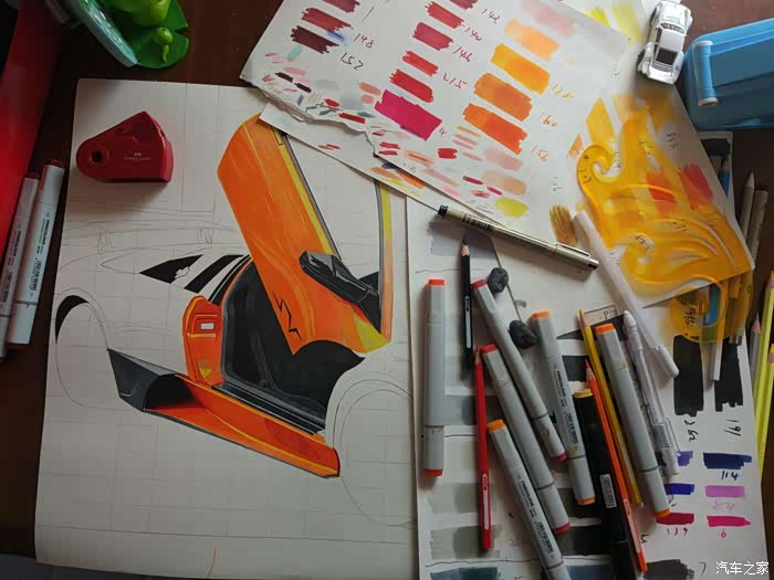 大扎好,我叫维特。这次给大家分享我的手绘新作,蝙蝠,上次在辣法帖子里的那个预告。兰博基尼里我最喜欢蝙蝠了,车头和屁股,都是骚骚的。不过我只见过盖拉多和埃文塔多,蝙蝠还没见过。话说,兰博基尼还是橙色的好看啊哈哈。