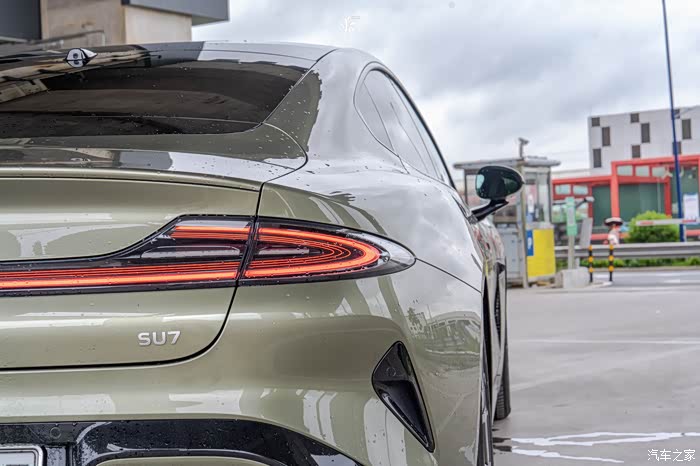 不过小米SU7吸引人的不仅仅是车身的线条设计,还有其帅气的小米水滴大灯,米字形矩阵式的灯组设计,确实很有辨识度,而尾灯的贯穿环形设计带着360颗超红光LED,确实走在街上是最靓的仔啊~