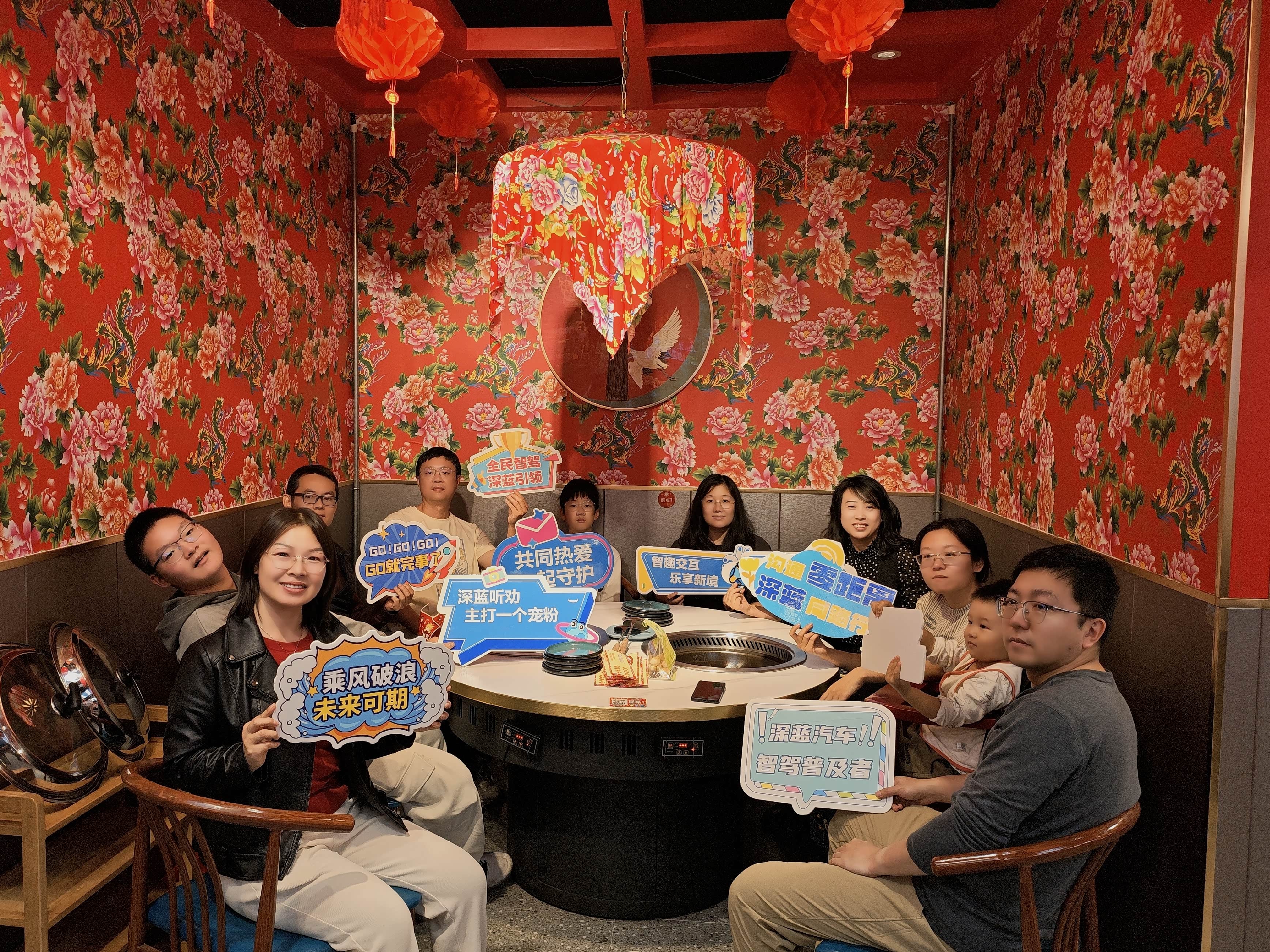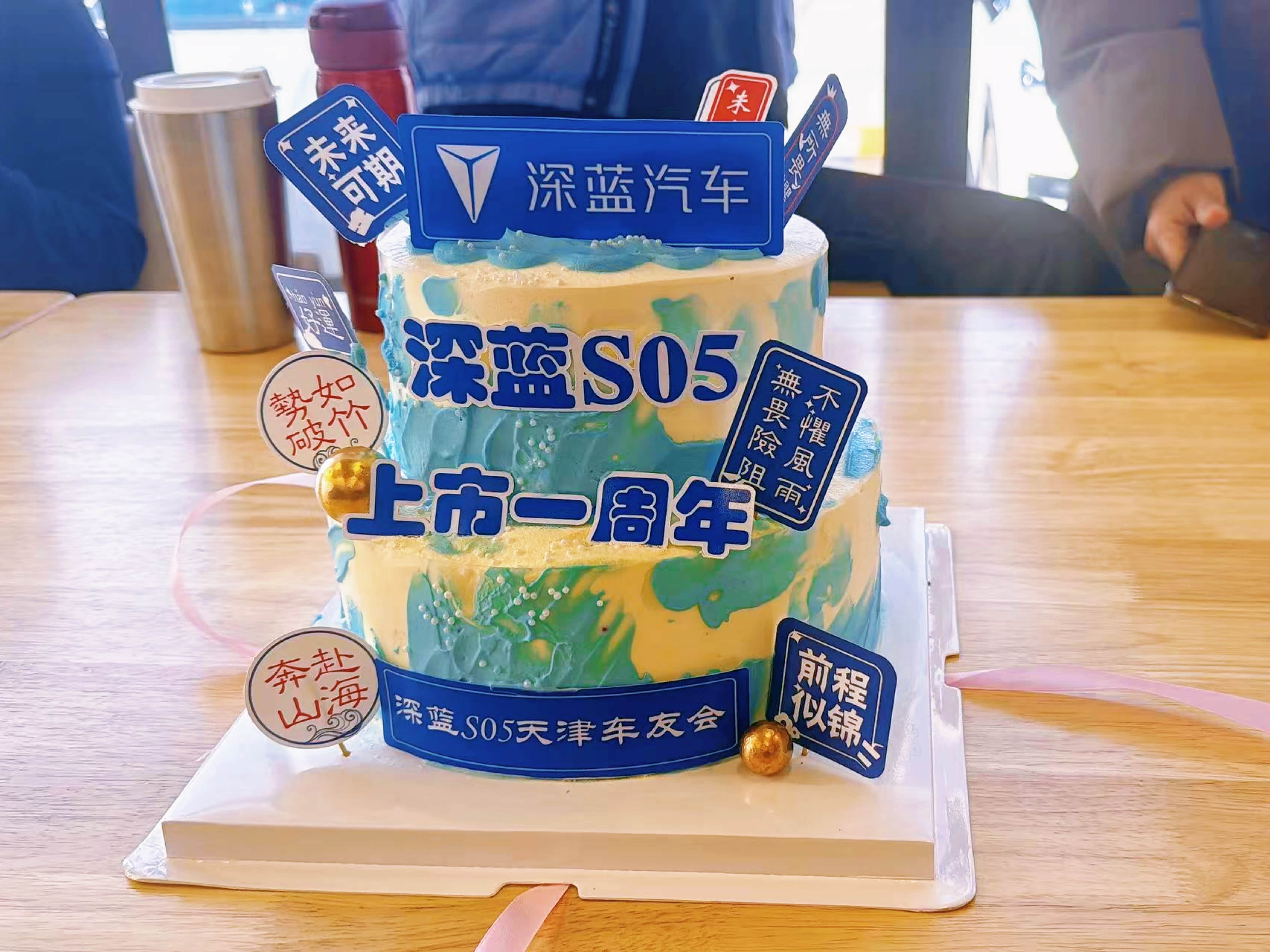 最难忘的当属11月底的蓟州滑雪派对。12台深蓝S05在服务区集结,26位车主及家属带着期待启程。盘山公路上,车辆稳定的底盘与低温下可靠的续航,彻底打消了我对新能源车冬季出行的顾虑;雪场里,大人孩子换上雪具尽情撒欢,新手在教练指导下从怯生生迈步到逐渐平衡,资深玩家在高级雪道上的流畅转弯引来阵阵喝彩。午餐时的自嗨锅驱散了寒意,席间车友分享的“冬季省电小妙招”实用又暖心;恰逢深蓝S05上市一周年,印有“深蓝S05一周年快乐”的蛋糕推来的瞬间,全体车友齐唱生日歌,手持“一岁深蓝,智驾同行”手牌录制视频的画面,让归属感在心中满溢。