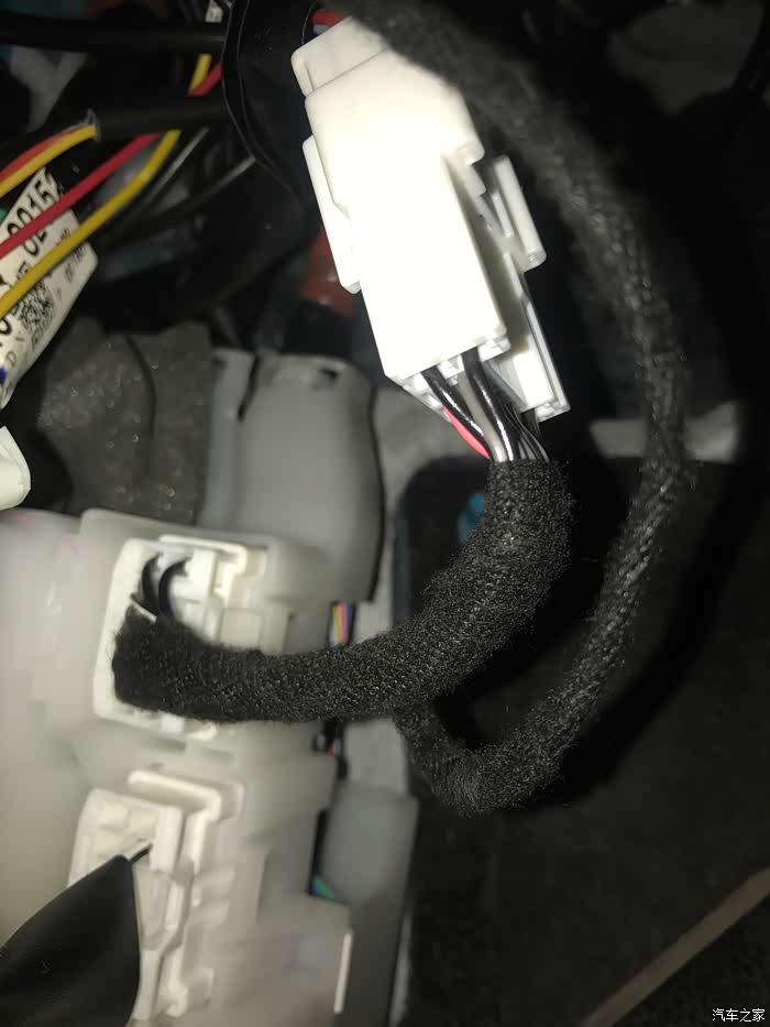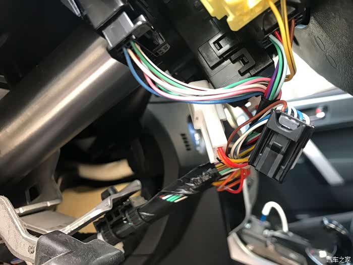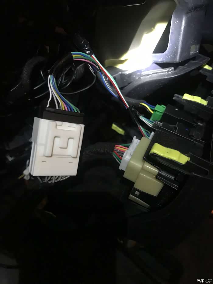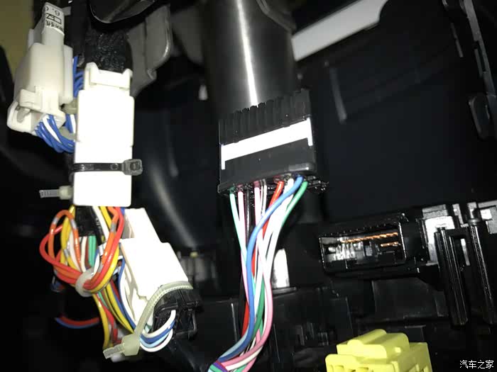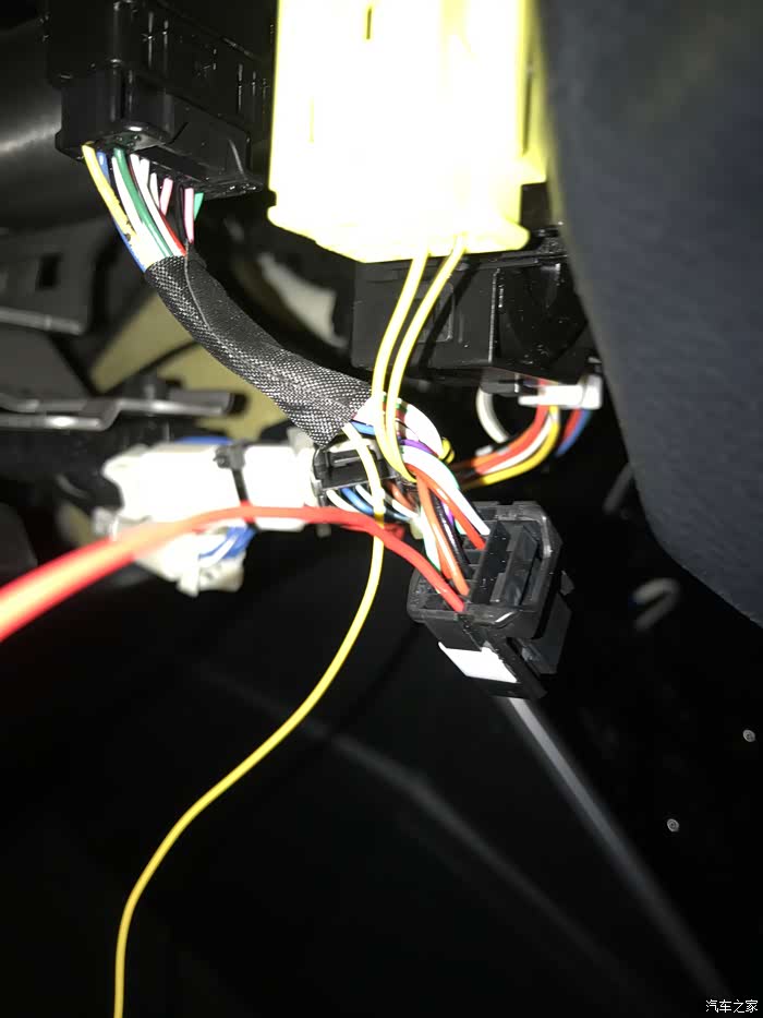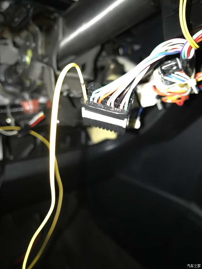 开始飞线,先飞黄线,在方向盘下面有个插头。