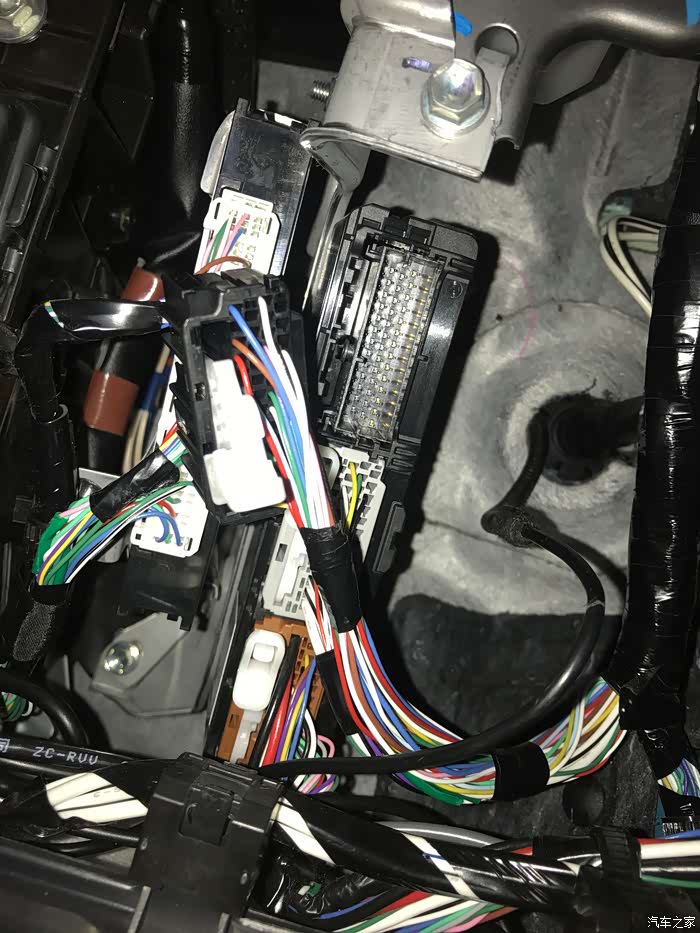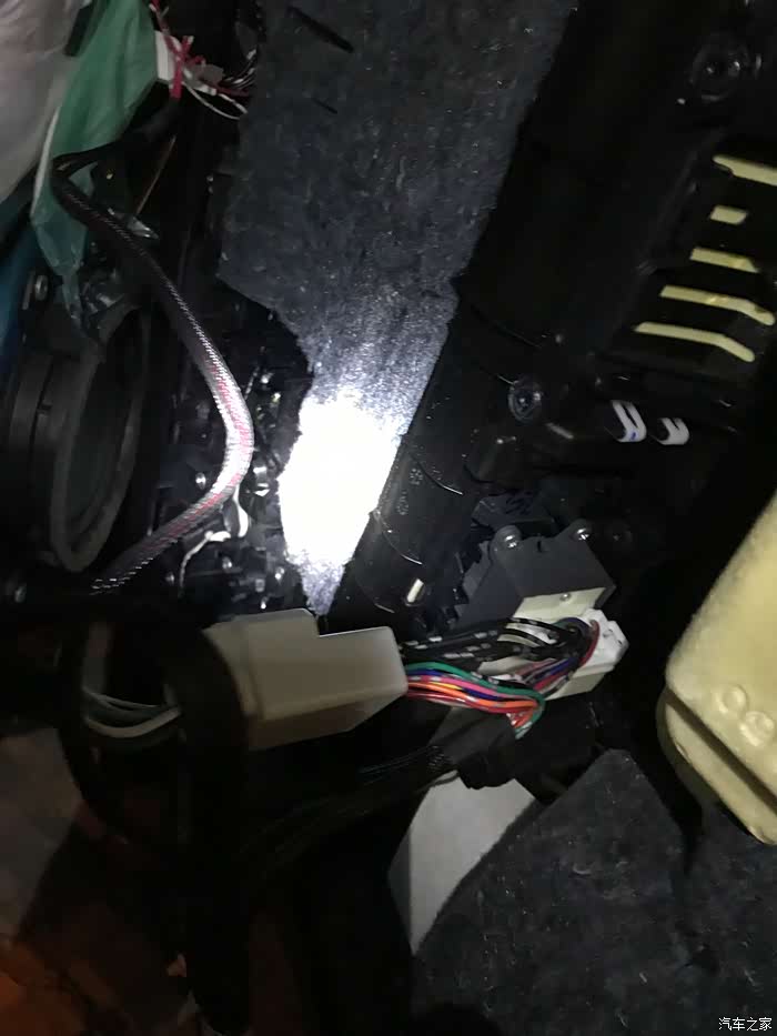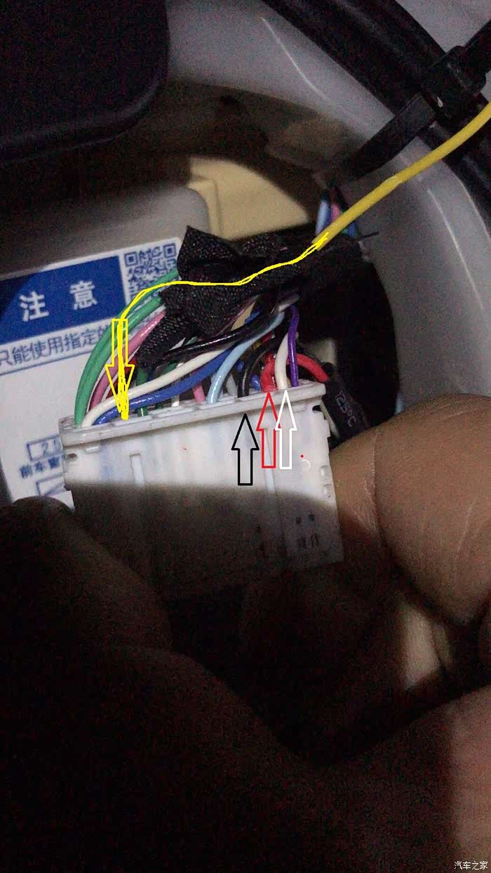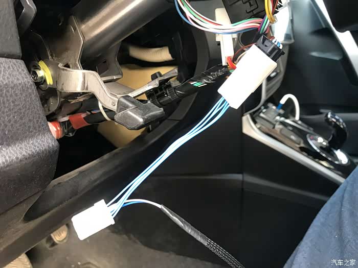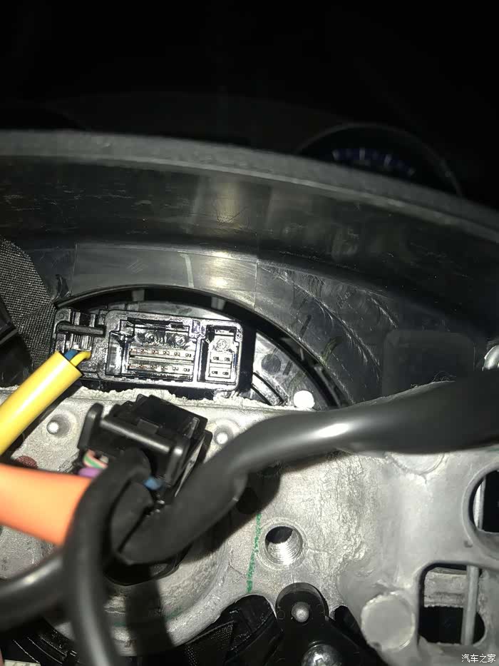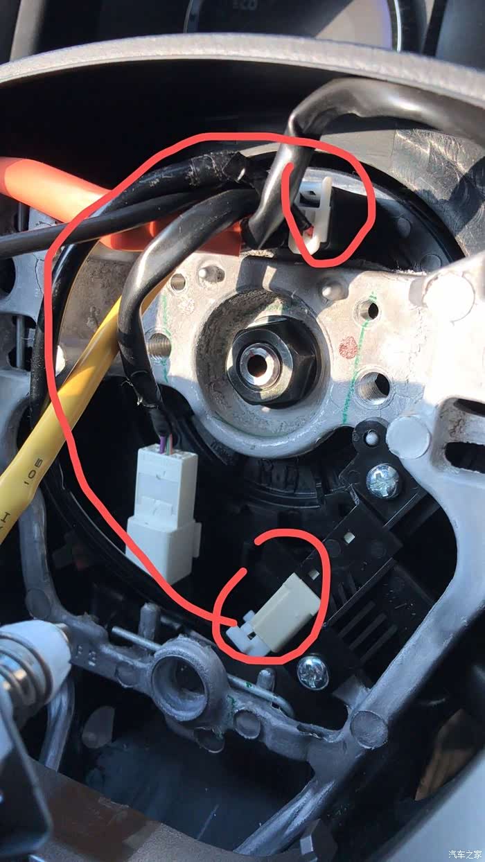开始飞线,先飞黄线,在方向盘下面有个插头。