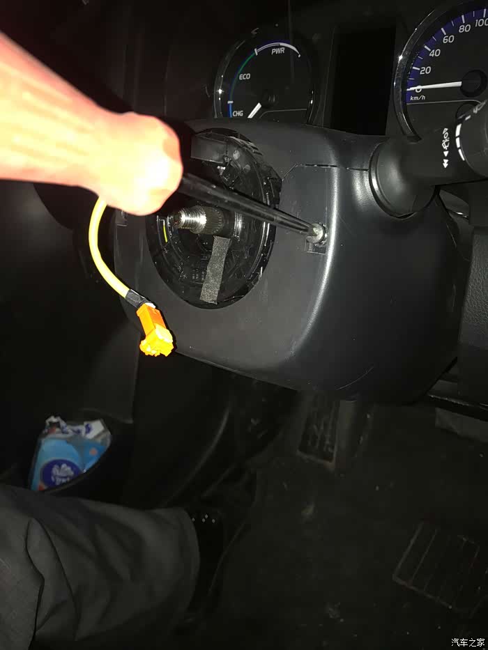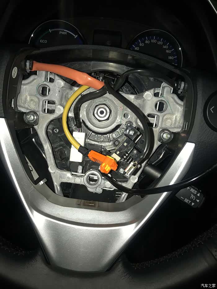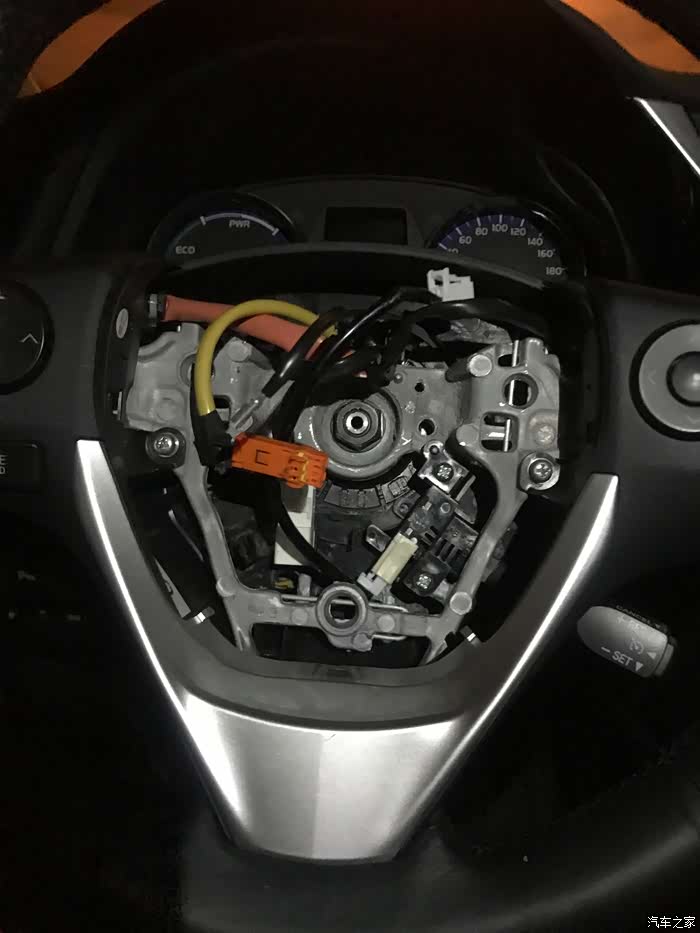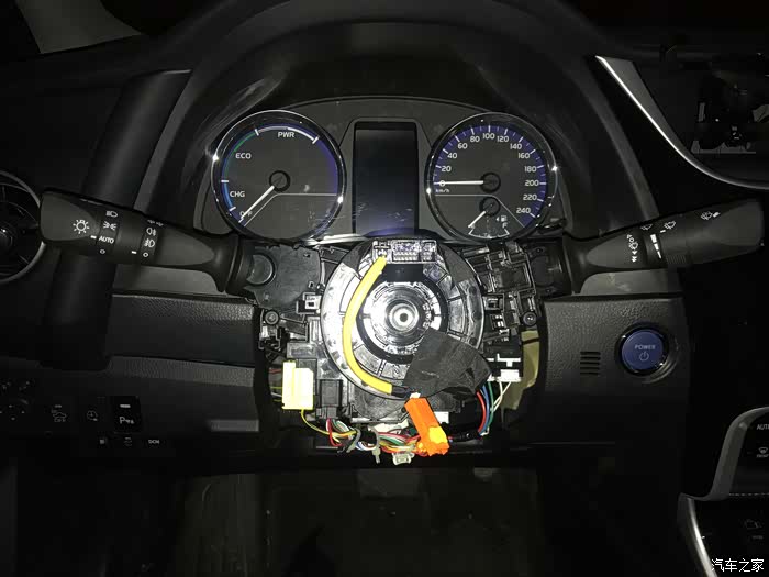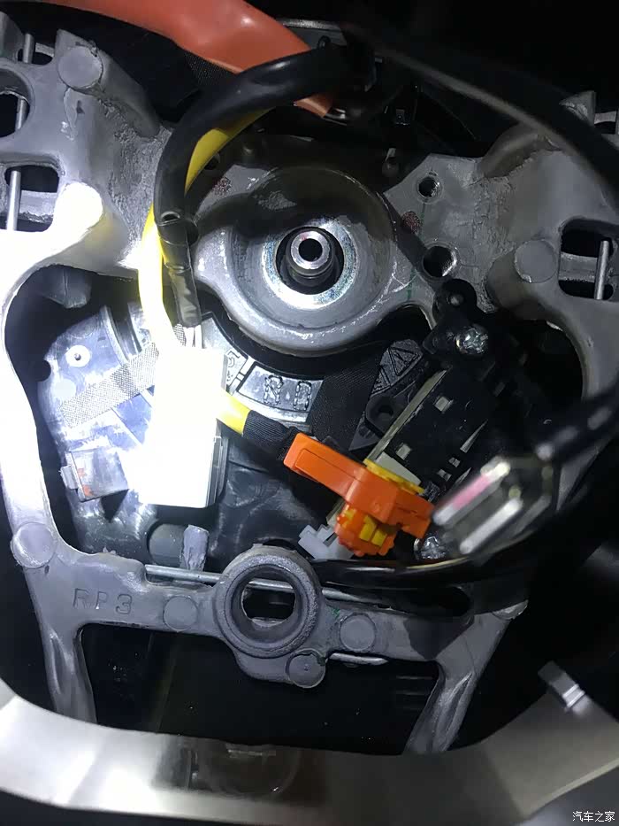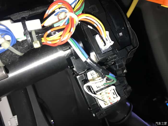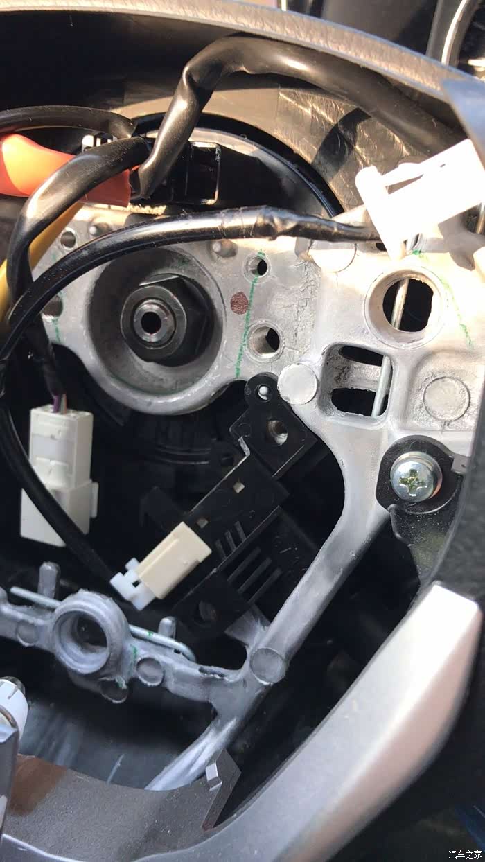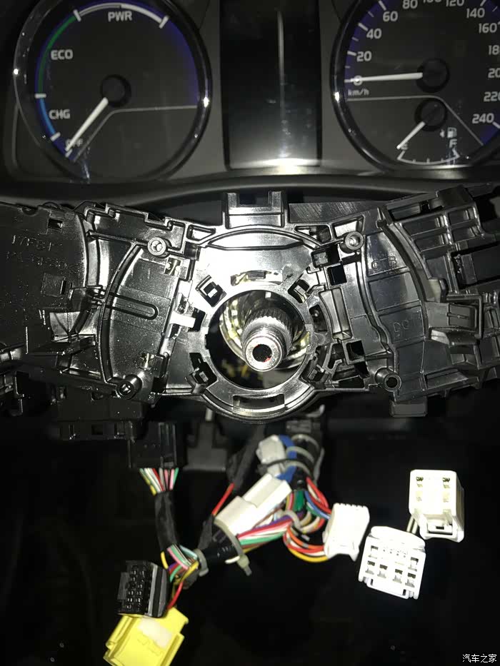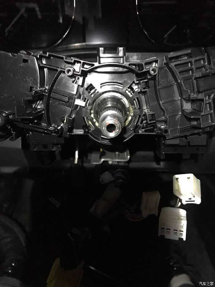熄火后,拆下电瓶负极,开始拆方向盘,拆气囊等步骤详见定速巡航篇有介绍,这里就不重复了。