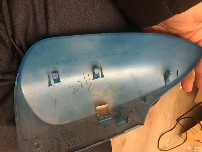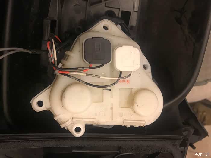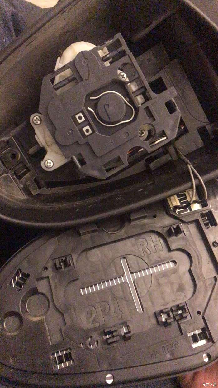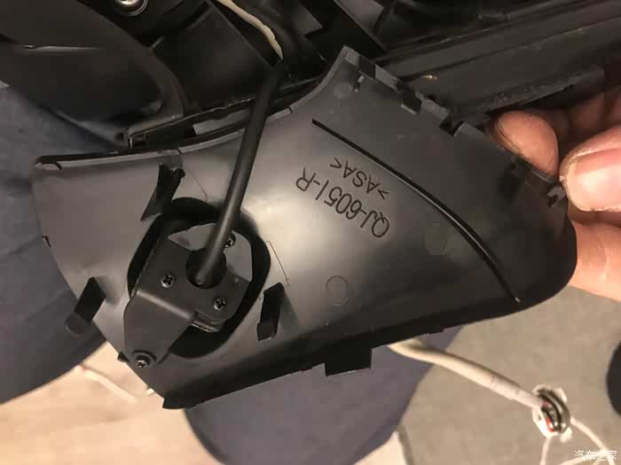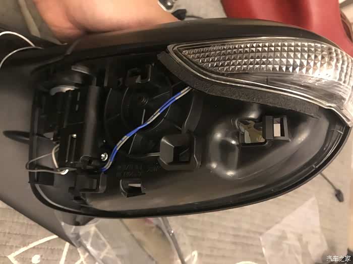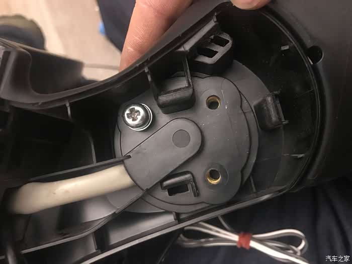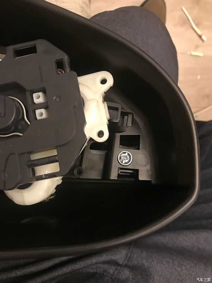 拧开三个螺丝,拆开原后视镜框,替换成带电机的后视镜框