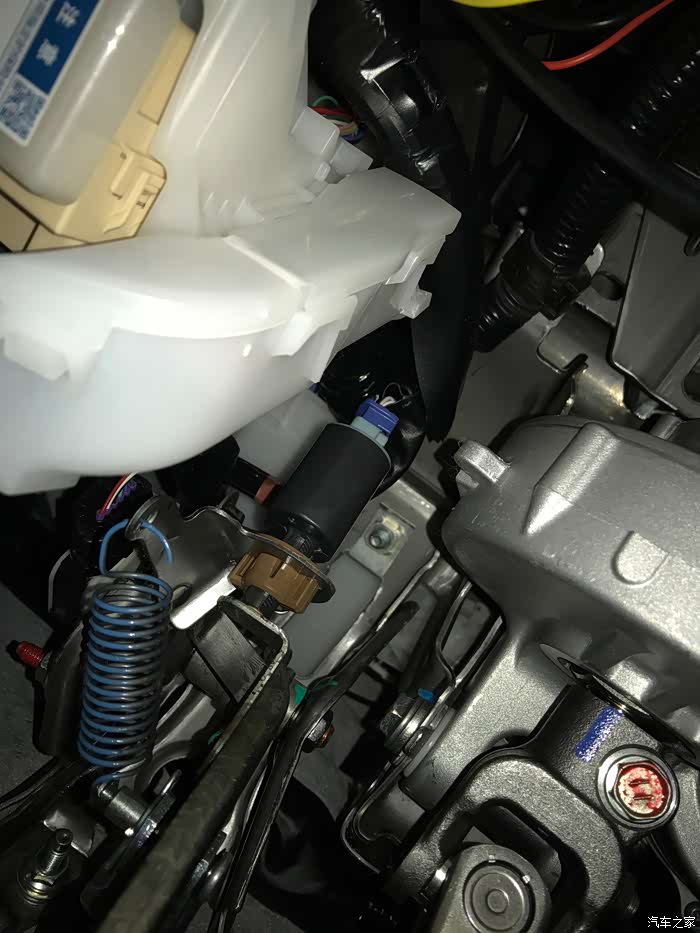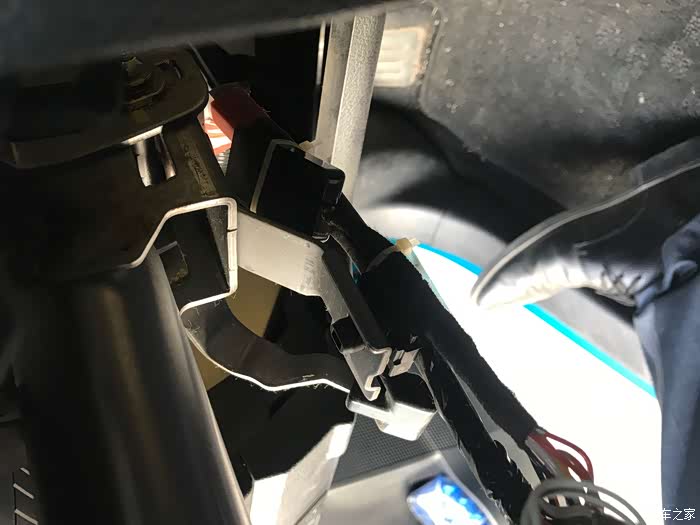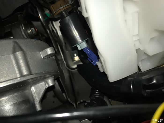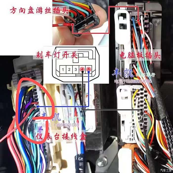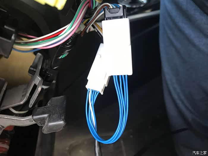这个是主驾驶室下面刹车上面,有个蓝色的刹车灯开关,拔出,对插白色插头,拔出时要小心不要弄坏棕色部位的连接塑料。