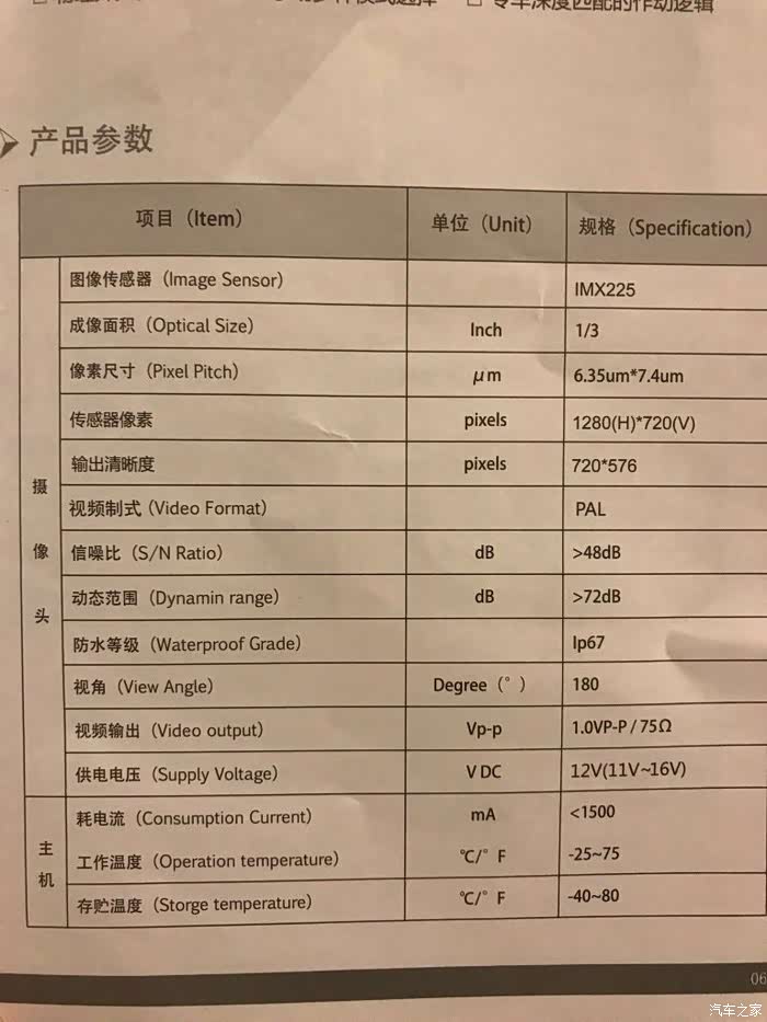 有了想法就开始行动,查看说明书和经过测试,这套360全景影像的摄像头使用的是SONY的225芯片,也是是130万的ahd摄像头,清晰度是720p的。