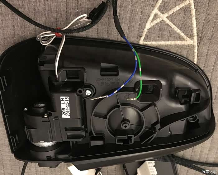 拆下后保险杠,穿线,注意安装角度装好,换镜片详见电动折叠后视镜。