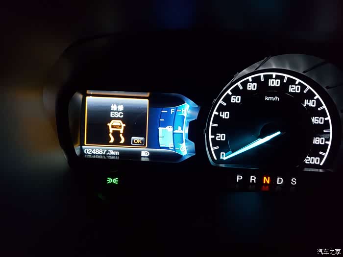 1、左侧屏幕会轮流显示“维修ESC、碰撞预警不可用、坡道起步辅助不可用、维修泊车辅助、陡坡缓降控制故障”,仪表盘右上角ESC故障灯常亮,多媒体屏幕中央感叹号;