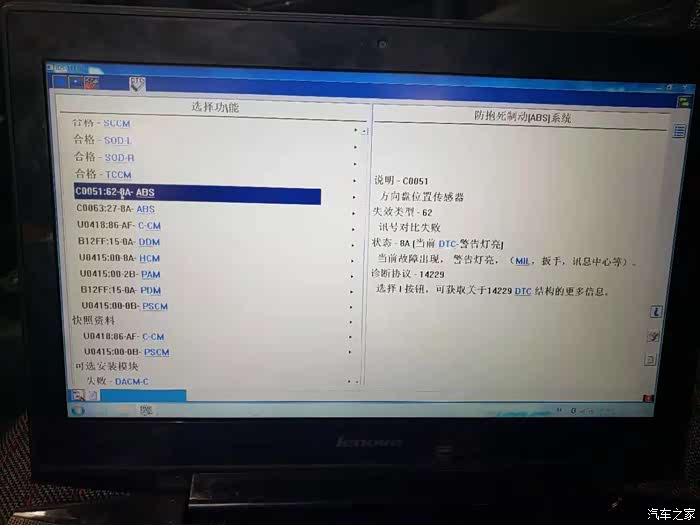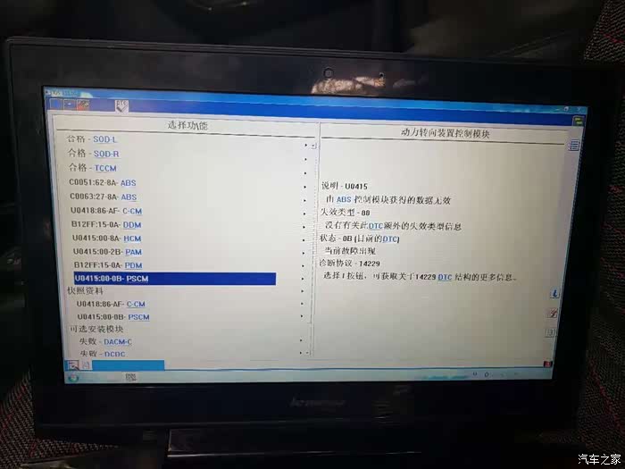 车子更换了刹车开关,检查了转向机连接行车电脑的线路,提车归来。故障复发,但是故障有变化,从5个变为两个。