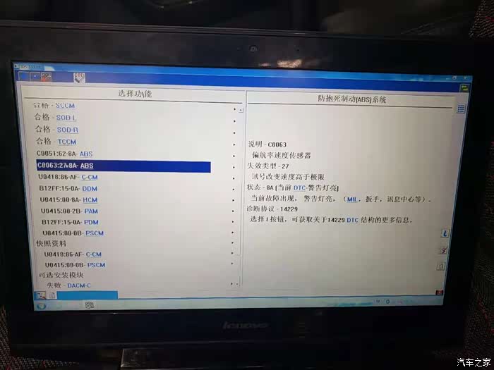 2、轮速传感器会有其它更多故障码,也可以通过一些外部电压测量判断,排除了;